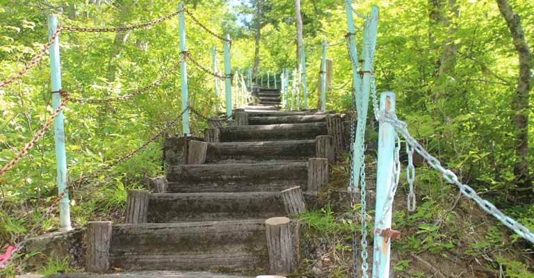 この階段を下りてきました。帰りは延々と上らなければなりません。
